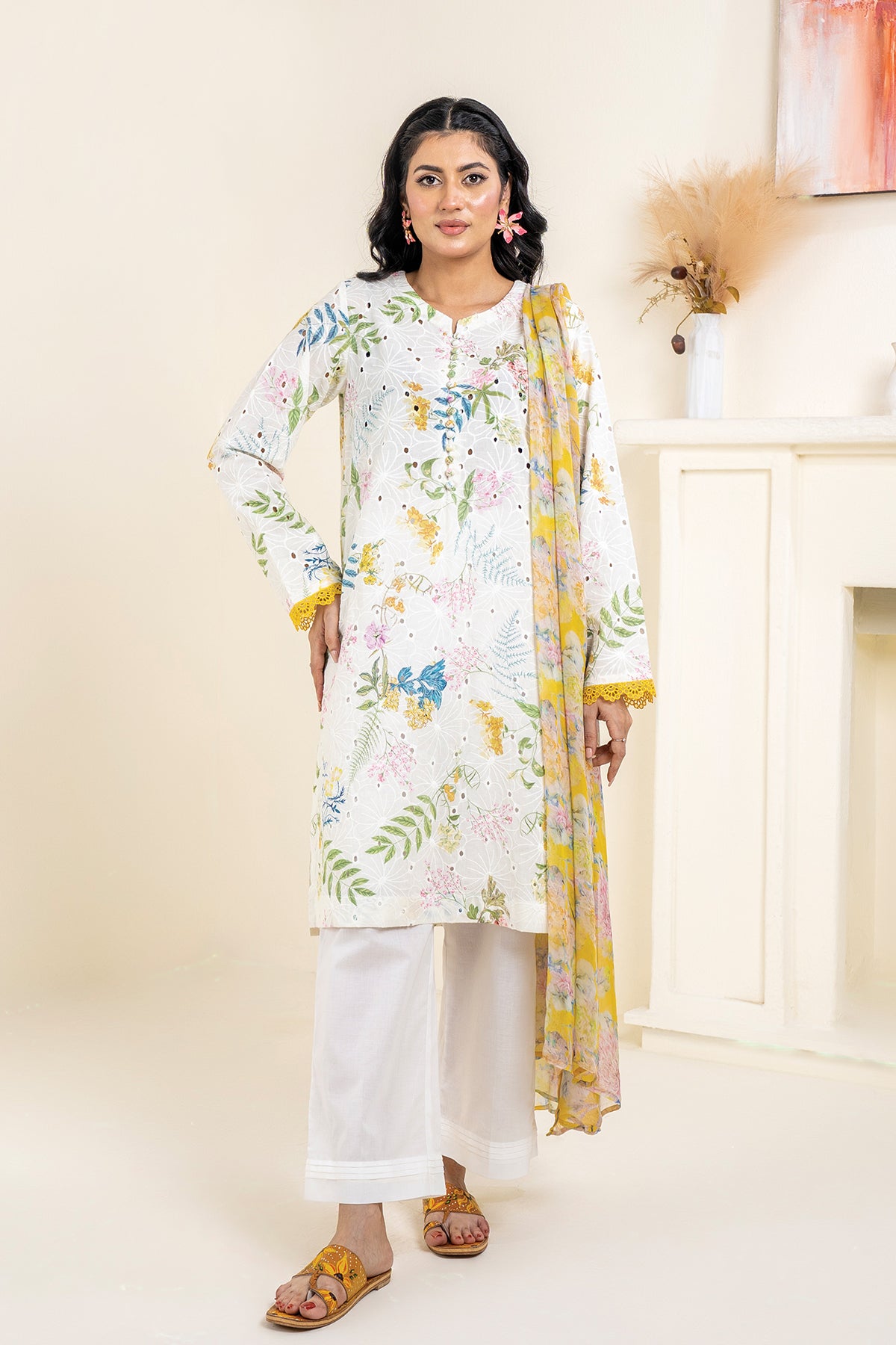 This shirts features a bold floral print on chiken fabric with loop button neckline detail and lace on sleeves comes with a georgette dupatta.