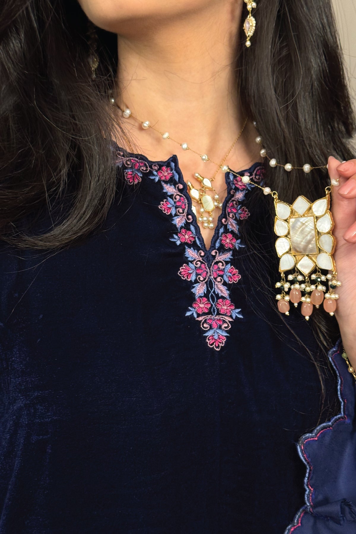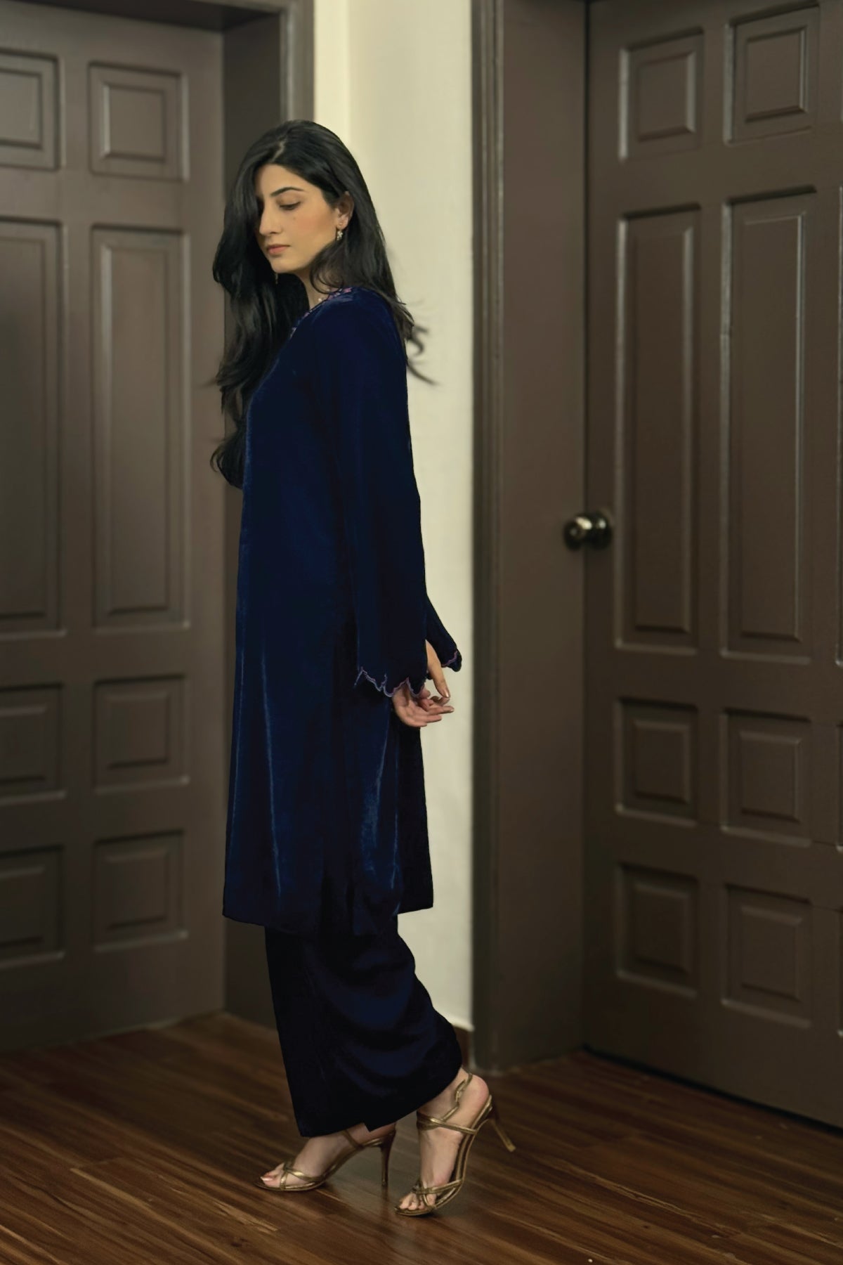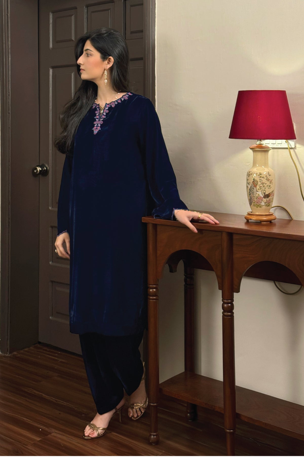 This set features embroidered neckline and sleeves with scallop detail. Paired with matching shalwar.